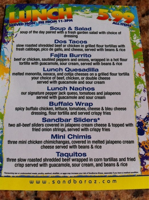 Sandbar Mexican Grill Menu